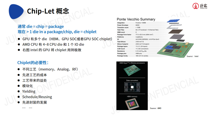 Chiplet通过解构传统“单芯片”模式,将复杂SoC拆分为可独立制造、功能模块化的“芯粒”,实现异构集成与系统级PPA优化。其驱动力在于:一、异构工艺融合,使CPU、GPU、存储等单元采用各自最优制程;二、通过核心单元使用先进工艺、其余采用成熟工艺的方式,实现成本与良率平衡;三、模块化芯粒可跨产品复用,推动设计范式向敏捷化演进,支持快速迭代与深度定制。